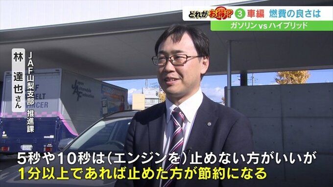 5秒や10秒は(エンジンを)止めない方がいいが、1分以上であれば止めた方が節約になる。