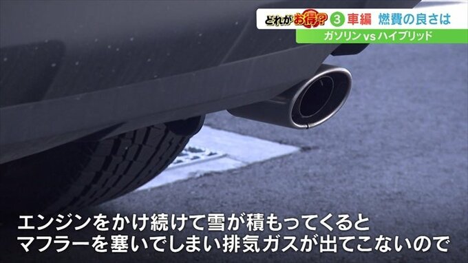 エンジンをかけ続けて雪が積もってくると、マフラーを塞いでしまい排気ガスが出てこないので、内部に一酸化炭素が充満して一酸化炭素中毒になる危険性があるので、適度にエンジンを切って、かけ続けるのであればマフラーを意識して。