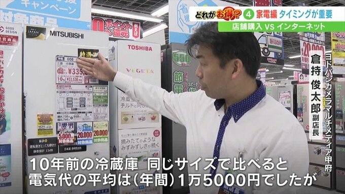 10年前の冷蔵庫、同じサイズで比べると電気代の平均は(年間)1万5000円でしたが今は半額以下になっています。