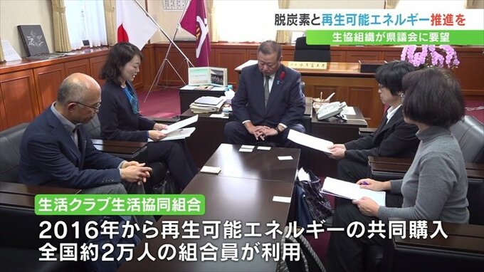 脱炭素と再生可能エネルギーの推進を山梨県内の生協組織が県議会に要望しました。