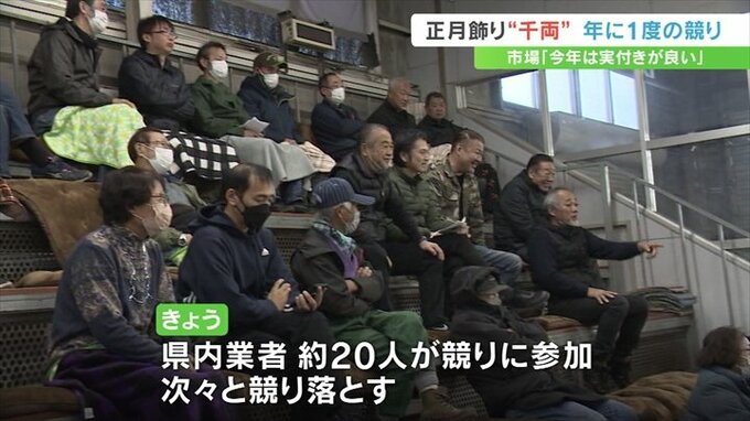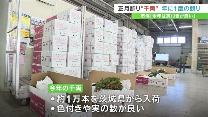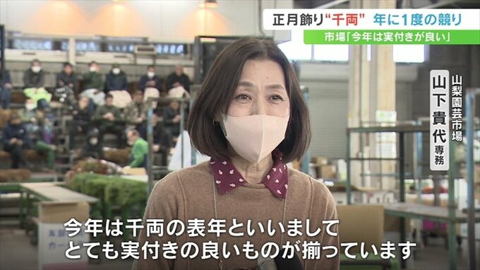 甲府市の山梨園芸市場では毎年この時期に年に一度の千両の競りが行われます。