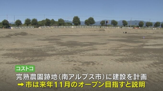 大型量販店のコストコは事業を停止した南アルプス完熟農園の跡地に建設が計画され、南アルプス市はこれまで2024年11月のオープンを目指していると説明していました。