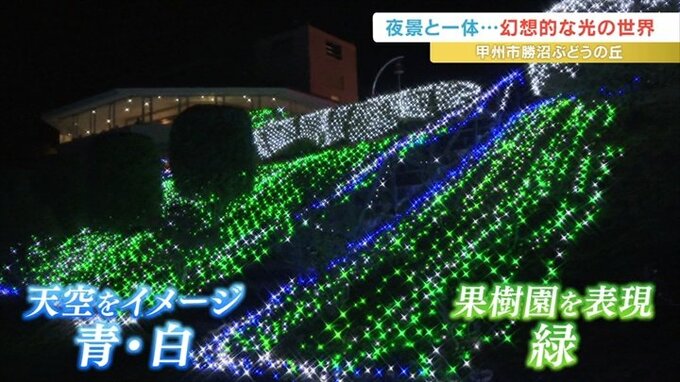 また、あえて光量を抑えることで甲府盆地の夜景との一体感が生み出され、夜空の下幻想的な光の世界を楽しむことができます。