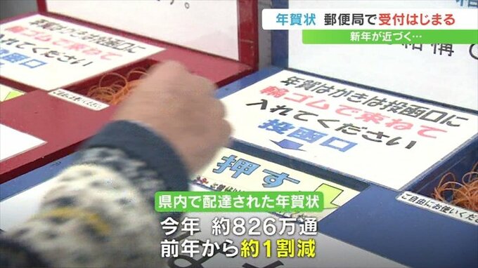 今年県内で配達された年賀状は約826万通で前の年より1割減少しています。