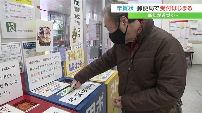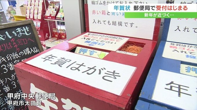 甲府市太田町の甲府中央郵便局では受付初日の15日、局内に年賀状の専用ポストが設置されました。