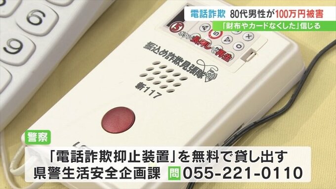 県警は詐欺事件として捜査するとともに「電話詐欺抑止装置」を無料で貸し出し注意を呼びかけています。
