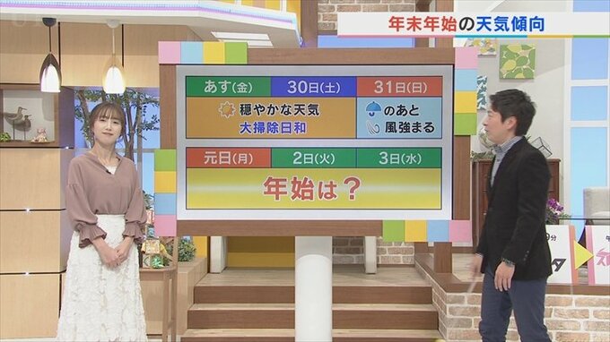 まず、年末にかけての天気傾向ですが、あすそして30日の土曜日は穏やかな天気となりますので、大掃除日和となります。
