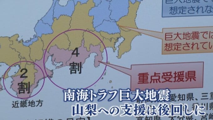 このうち南海トラフ巨大地震は被害地域が広範囲に及ぶおそれがあるため、山梨への国の支援は後回しになると指摘しています。