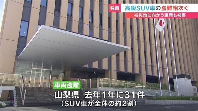 県警によりますと去年1年間で31件の車両盗難があり、今回被害にあったSUV車が全体の約2割を占めています。