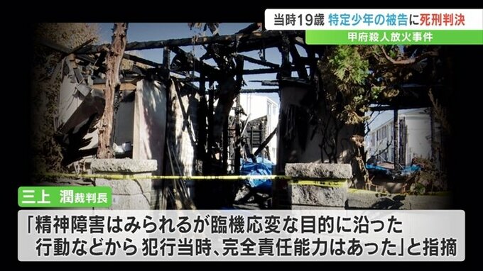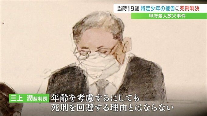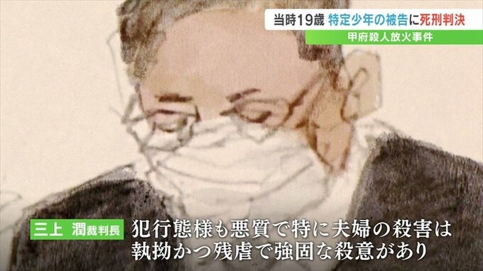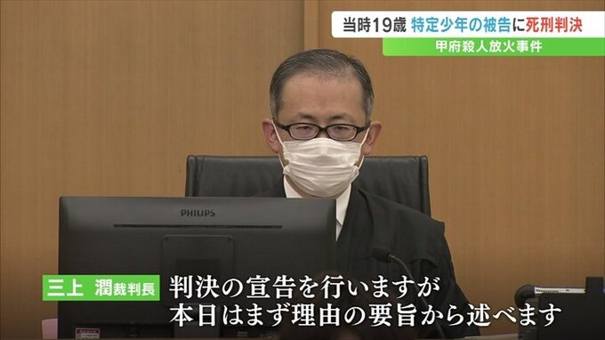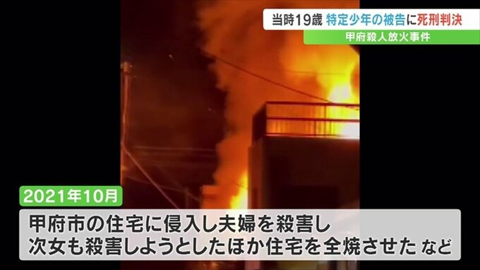 3年前、甲府市の住宅で夫婦を殺害し住宅に放火したなどとされる当時19歳の被告の裁判で甲府地方裁判所は死刑判決を言い渡しました。