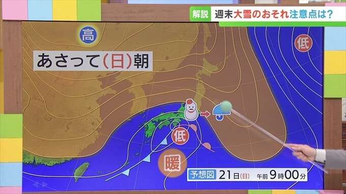 今回、この低気圧が比較的陸地の近くに通るということで、南から暖かい空気を運んできますので、雪のところも雨に変わってくる予想です。