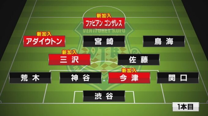 1本目は、1トップにファビアン・ゴンザレスや左サイドハーフにアダイウトンの新加入の外国人選手を起用しました。
