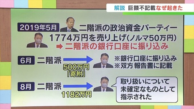 この500万円は、二階派も長崎知事側も政治資金収支報告書に記載しているとしています。