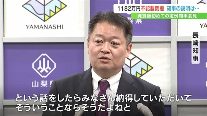 山梨県の長崎知事の資金管理団体が派閥から渡された現金1182万円を収支報告書に記載せず保管していた問題です。