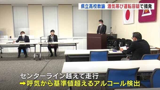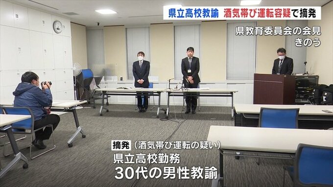 酒気帯び運転の疑いで摘発されたのは県立高校に勤務する30代の男性教諭です。