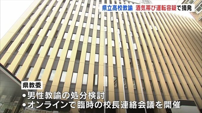 県教委は処分を検討するとともにきょう26日、オンラインで臨時の校長連絡会議を開き、服務規律の徹底を求め指導するとしています。