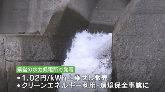 県営の水力発電所で発電した電気を1kWh当たり1.02円上乗せして販売し、発電時にCO₂を排出しないクリーンエネルギーを利用できるほか、上乗せ分の一部は県内の環境保全事業に使われます。
