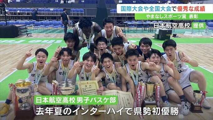 このうち団体で選ばれた日本航空高校男子バスケットボール部は、2023年夏のインターハイで県勢として初めて優勝しました。