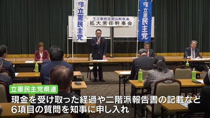 立憲民主党県連では現金を受け取った経過や二階派の報告書の記載などに関する6つの質問を記した申し入れ書を10日に知事に郵送し、記者会見やホームページでの説明を求めています。
