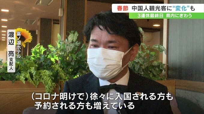(コロナ明けで)徐々に入国される方も予約される方も増えている、(中国人観光客は)まだまだ2割から3割。