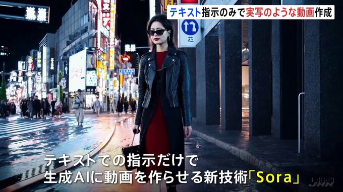 チャットGPTを開発したアメリカの「オープンAI」は、テキストのみで生成AIによる動画を作ることができる新たな技術を公開しました。オープンAIが公開した動画。「夜の東京」だとしていますが、よく見ると看板の文…