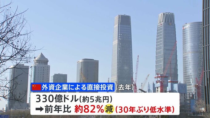 去年の中国での外資企業による直接投資が前年と比べて、8割以上減少したことが分かりました。中国の国家外貨管理局が18日に公表した去年の国際収支統計によりますと、外資企業による直接投資は330億ドル、日本円に…