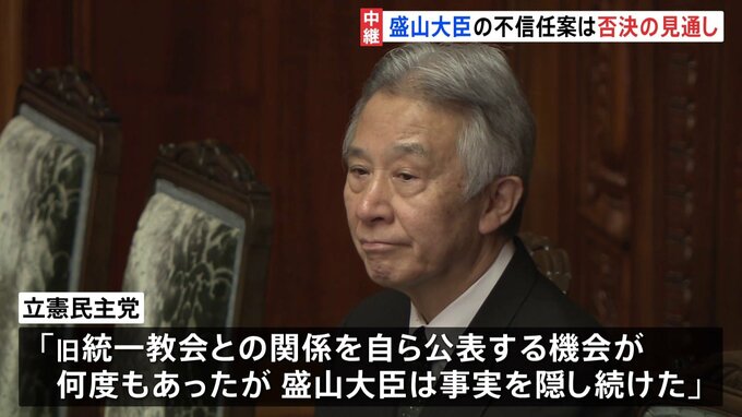 国会では先ほどから、旧統一教会の関連団体から選挙支援を受けていたとされる盛山文部科学大臣への不信任決議案を採決する衆議院本会議が始まりました。立憲民主党は、教団側との関係について「記憶にない」と繰り…