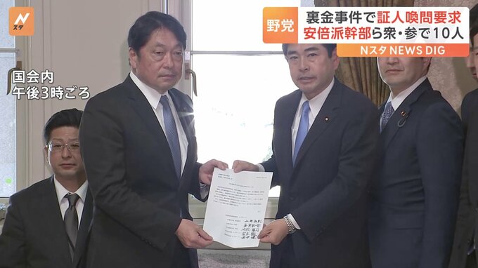 自民党の派閥の裏金事件をめぐり、野党側が衆議院と参議院で合わせて10人の証人喚問を要求です。野党側は先ほど、衆議院の小野寺予算委員長に対し、裏金事件をめぐり、政治倫理審査会に出席した安倍派幹部5人と起…