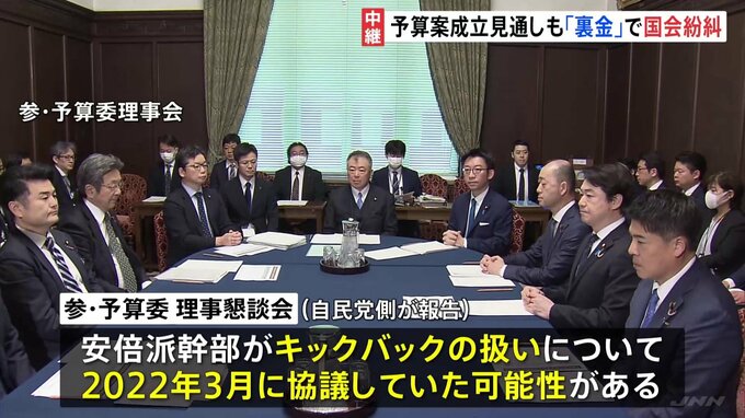 国会ではきょう午後にも新年度予算案が成立する見通しですが、自民党の派閥の裏金事件をめぐって紛糾しています。国会記者会館から新田記者です。野党側は、岸田総理らがきのうまで2日間行った安倍派幹部への聴取…
