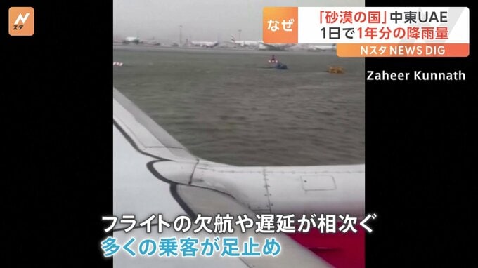 中東の「砂漠の国」、UAE=アラブ首長国連邦で記録的大雨が降りました。1人が死亡したほか、世界有数の利用客を誇るドバイの国際空港では多くの人が足止めされるなど混乱が起きました。半分ほどが水につかった車。…