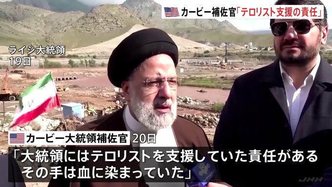 イランのライシ大統領がヘリコプターの墜落事故で死亡したことについて、アメリカ政府は哀悼の意を表明しつつも、「ライシ大統領にはテロリストを支援していた責任がある」と批判しました。アメリカのカービー大統…