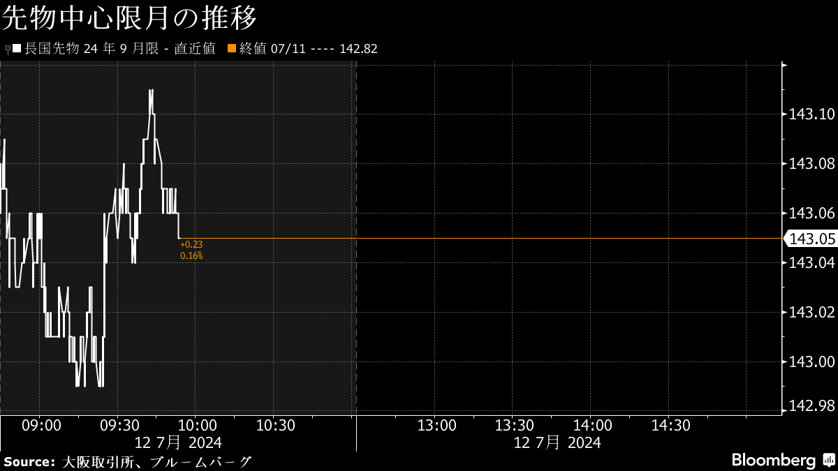 (ブルームバーグ): 12日の債券相場は上昇。米国市場で消費者物価指数(CPI)の伸びが鈍化し、年内に少なくとも2回の利下げがあるとの観測が強まったことを受け、長期金利が低下した流れを引き継いでいる。為替市場で円相場が対ドルで急伸し、日本銀行の早期政策修正観測が低下していることも支援材料になっている。