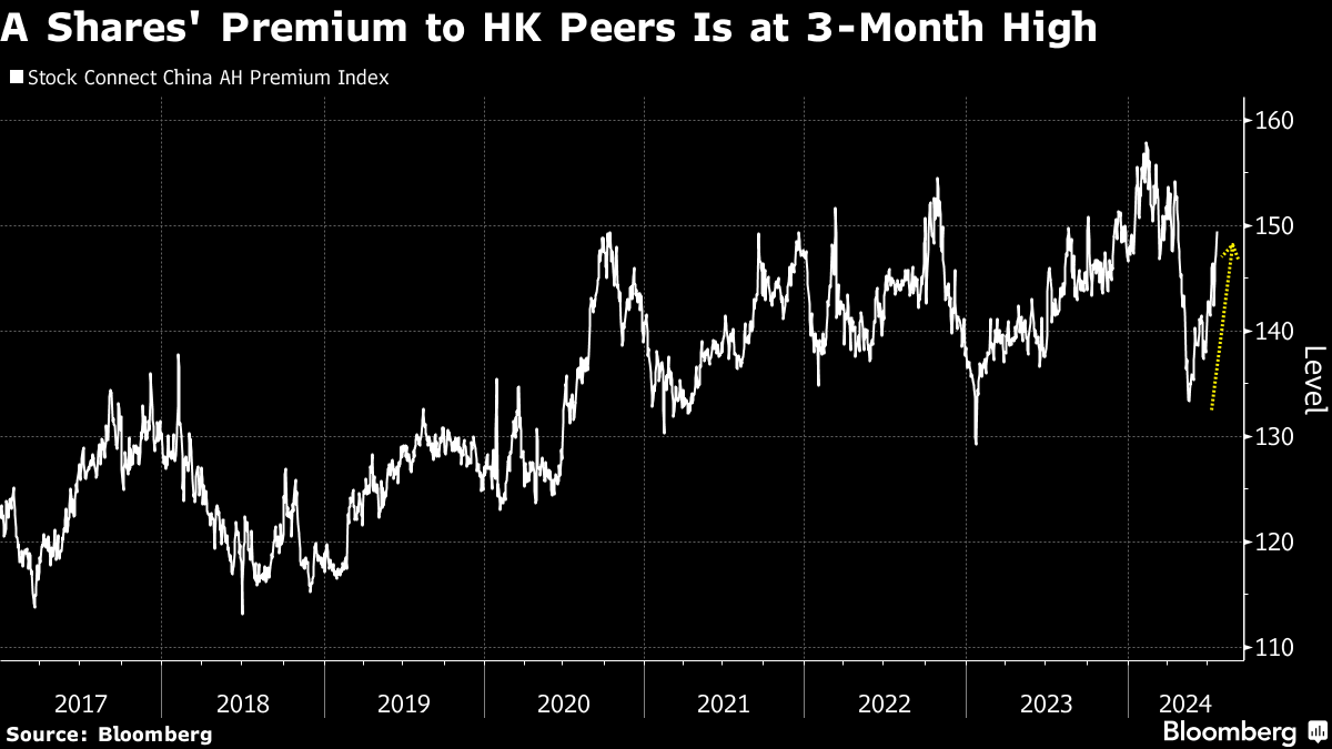 香港に上場する中国本土株の指標ハンセン中国企業株(H株)指数は2%を超える下げとなった。ただ、中国本土株の指標CSI300指数は0.5%高で引けた。