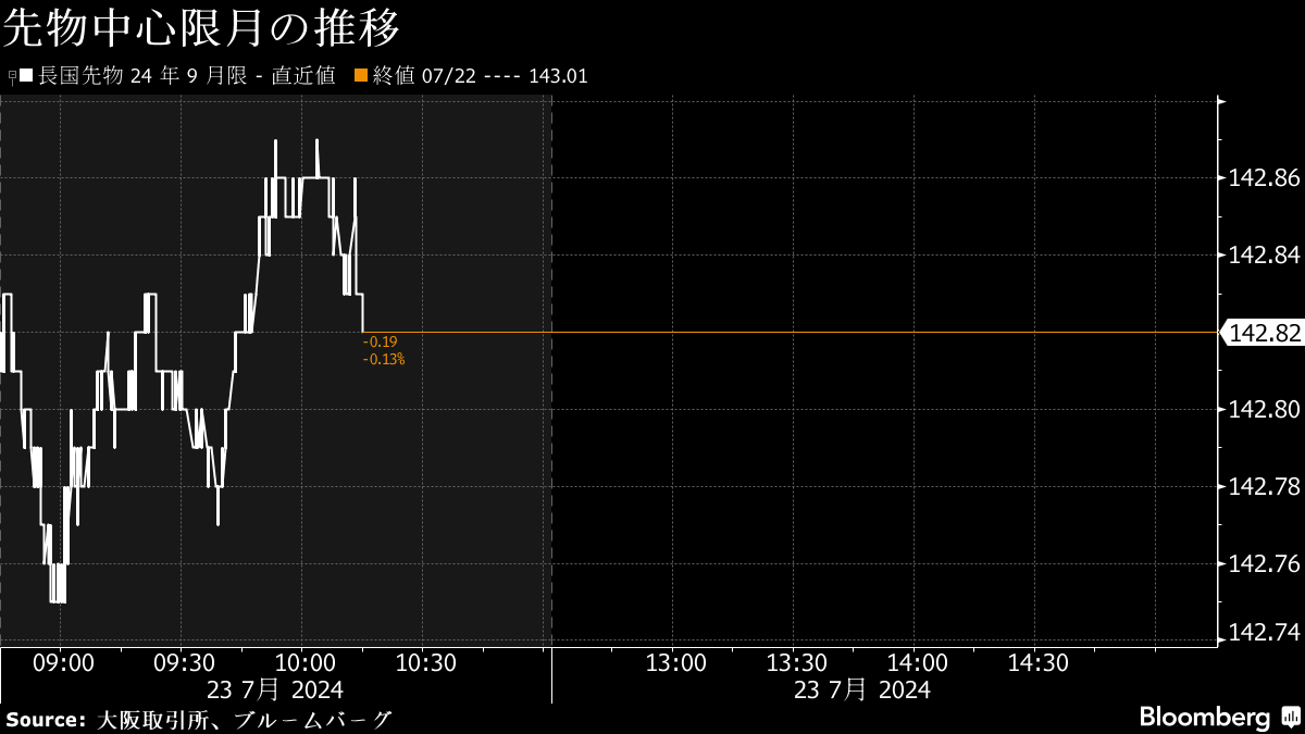 (ブルームバーグ): 23日の債券相場は下落。日本銀行が来週開く金融政策決定会合で国債買い入れの大幅減額や追加利上げに踏み切ることへの警戒感がくすぶっている。米国市場で長期金利が上昇したことも重しだ。