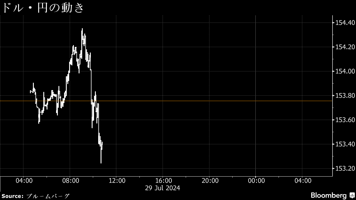 (ブルームバーグ):29日の東京外国為替市場の円相場は1ドル=154円台前半に上昇して推移。前週末の米株高やこの日の日本株の上昇で投資家心理が改善し、円売りが先行した後、金融機関が外為取引の基準レートとする公示仲値の設定にかけて円買いに転じた。日米の金融政策決定を週半ばに控え、市場では結果を見極めたいとして手控え感が強まりやすい。