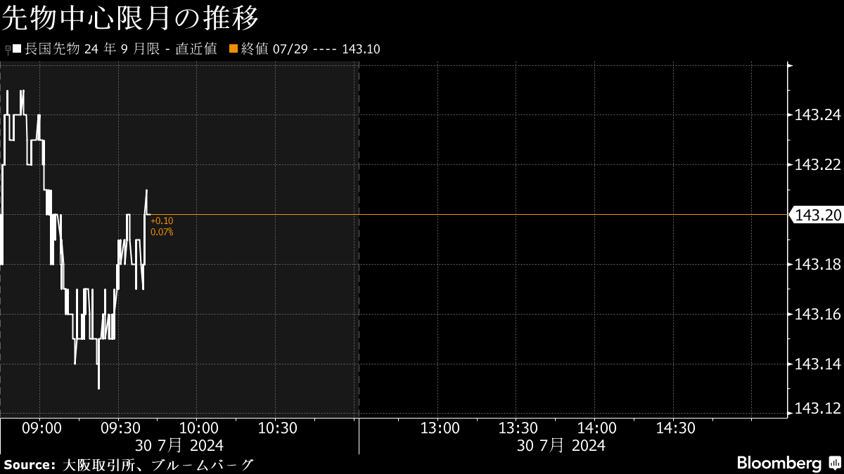 (ブルームバーグ):30日の債券相場は上昇。米国市場では9月から利下げ開始との見方が強く、長期金利が低下した流れを引き継いだ。一方、日本銀行がこの日から2日間にわたり開く金融政策決定会合で利上げを決めることへの警戒感は相場の重しだ。