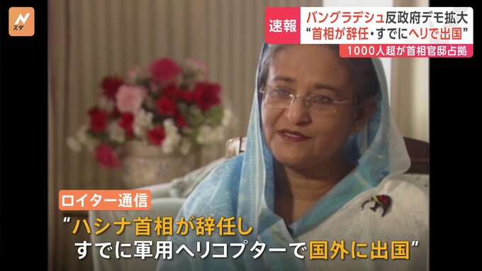 バングラデシュで反政府デモが拡大する中、ロイター通信はさきほど、ハシナ首相が辞任し、軍用ヘリコプターで出国したと報じました。バングラデシュでは先月以降、公務員採用の特別枠に反発する学生らの抗議活動が…
