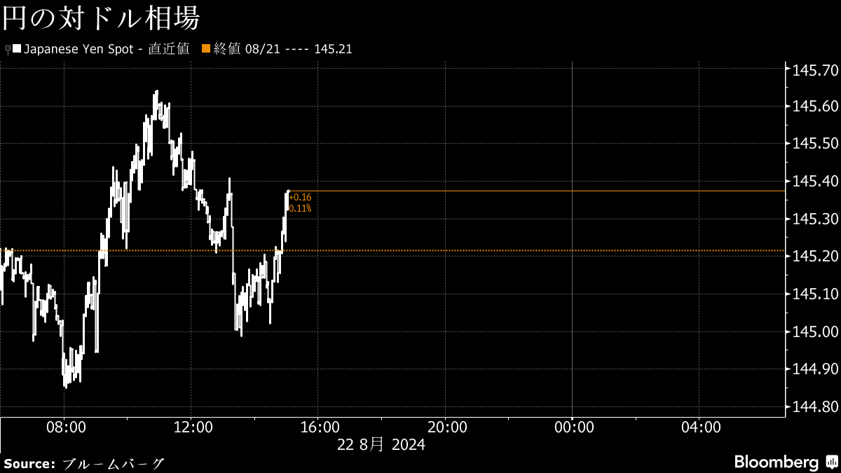東京外国為替市場の円相場は1ドル=145円台前半で推移。9月の米利下げ観測が強まり、ドル安・円高が進んだ後は売り買いが交錯した。国内株価の堅調な値動きも円買いが一服した一因。