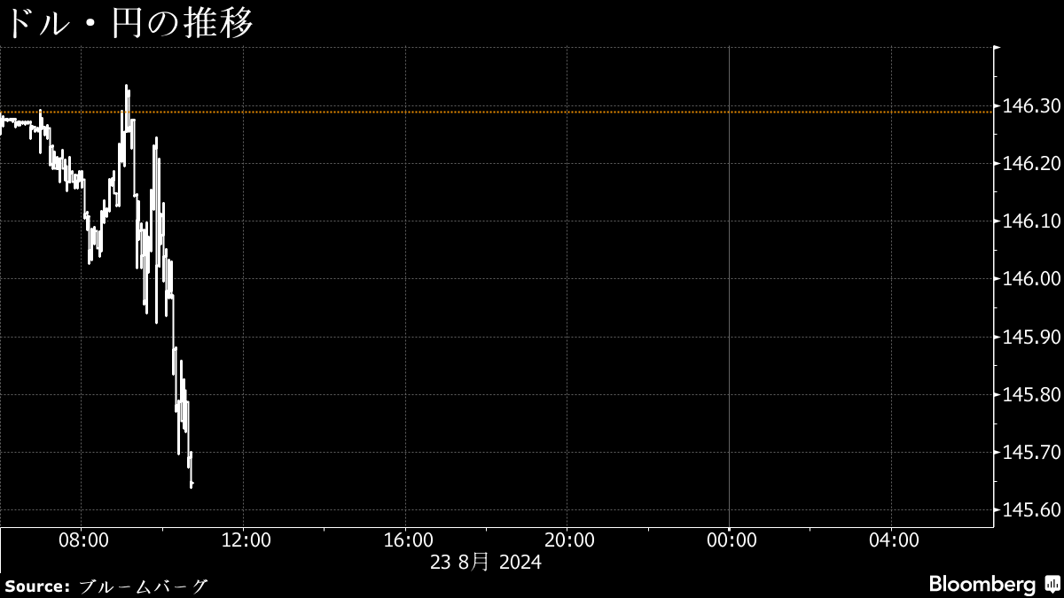 (ブルームバーグ):23日の東京外国為替市場で円相場は1ドル=145円台半ばに上げ幅を拡大。日本銀行の植田和男総裁が国会閉会中審査で発言する中、徐々に水準を切り上げている。