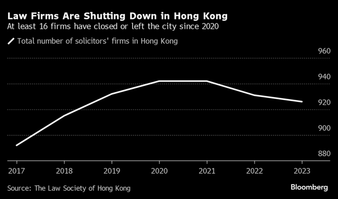 香港では20年以降、フィラデルフィアにルーツを持つデチャートやシカゴを本拠とするウィンストン・アンド・ストローンなど、少なくとも16の法律事務所が撤退または閉鎖した。世界最大級の法律事務所であるDLAパイパーはオフィススペースを縮小し、メイヤー・ブラウンは香港事業を分離する準備をしていると、事情に詳しい関係者が今年に述べている。
