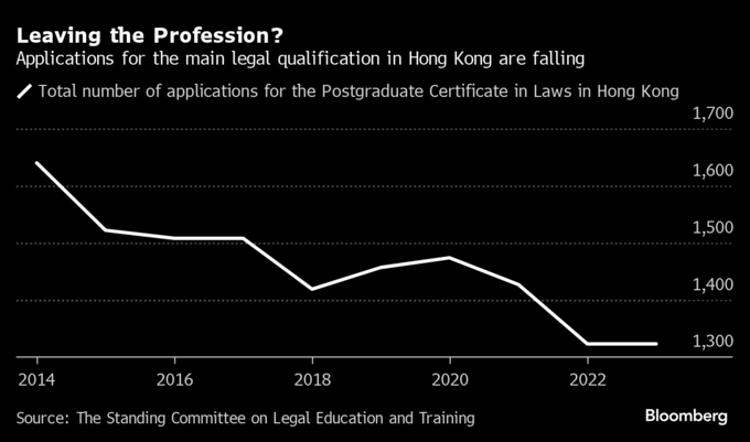 それから6年近くがたった今、香港では一流の法律事務所が閉鎖、外国人弁護士は香港を去り、リクルーターによれば研修生の受け入れも減少。見通しは暗くなっている。23歳のラム氏はパラリーガル(法律事務職員)として何とか仕事を得たが、弁護士という職業から完全に離れる卒業生も増えているようだ。