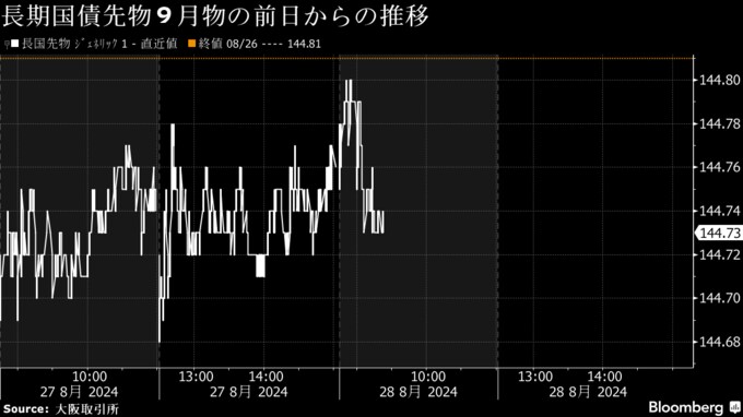 (ブルームバーグ):28日の債券相場は先物は上昇して始まった後、小幅安に転じている。流動性供給入札が好調で超長期債が堅調となった前日の流れを引き継ぎ、買いが先行。その後は日本銀行の氷見野良三副総裁の発言を控えて、利上げ継続に前向きな姿勢が示されることへの警戒感から売り優勢となっている。
