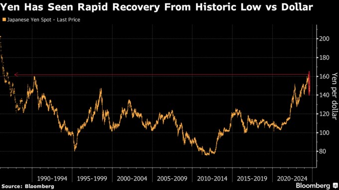 (ブルームバーグ):過去数十年の間で最も極端な動きとなった8月の日本市場。株式市場では、主要株価指数の下落率が1987年10月に記録したブラックマンデー以来の大きさに達する歴史的な暴落に見舞われた。東京外国為替市場の円相場は対ドルで38年ぶりの安値から一転し、一時は年初来高値に迫る水準まで反発した。