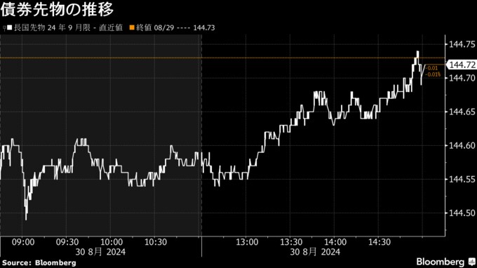 債券相場は小幅安で、長期金利は一時約3週間ぶりの高水準を付けた。米金利が上昇した流れに加え、朝方発表された8月の東京都区部の消費者物価指数(CPI)が市場予想からやや上振れたことで売りが先行。ただ、午後は下げ渋り、先物は引け際にプラスに転じる場面もあった。円相場は対ドルで144円台後半から145円付近で膠着(こうちゃく)感が強かった。