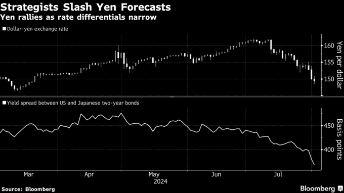 (ブルームバーグ):7月の日本銀行の追加利上げと最近の米連邦準備制度理事会(FRB)による利下げ示唆を受け、為替ストラテジストが円相場の方向性を見直している。
