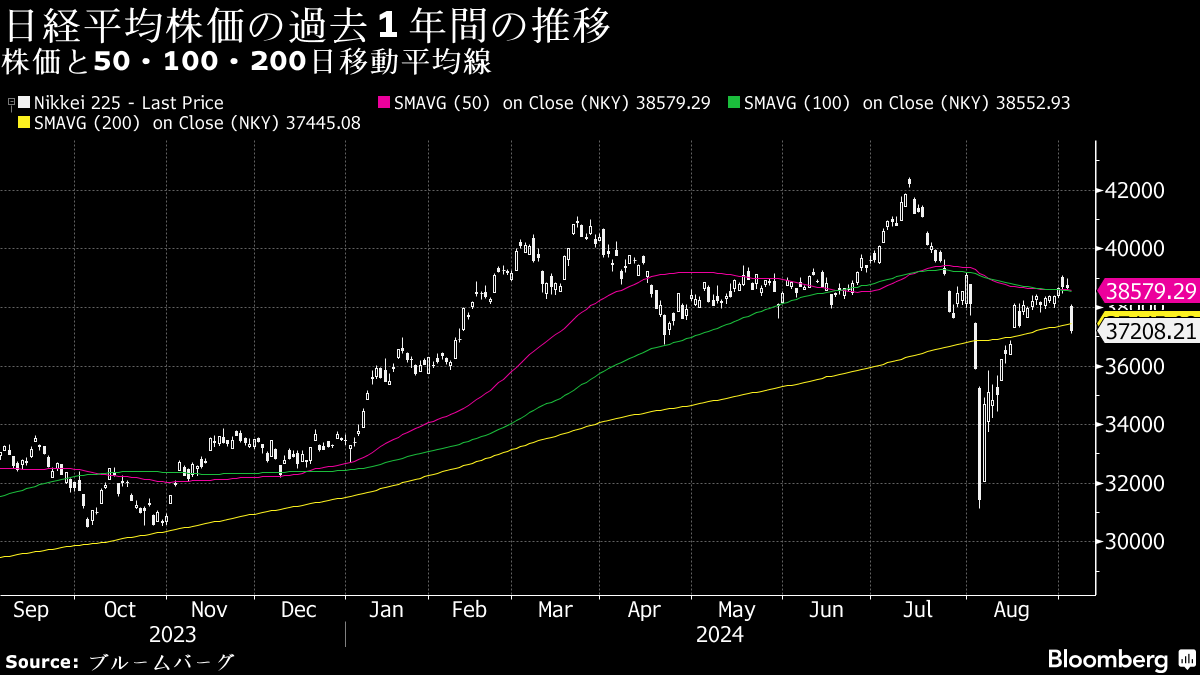 一方、三菱UFJモルガン・スタンレー証券の大西耕平上席投資戦略研究員は、ISM指数では雇用の改善が示されたとして、米景気のハードランディング懸念というより利益確定売りの口実になったとみる。需給面では日経平均が3万8000円台まで回復したことで、8月初旬に買った投資家などからの利益確定売りが出やすかったとも話した。