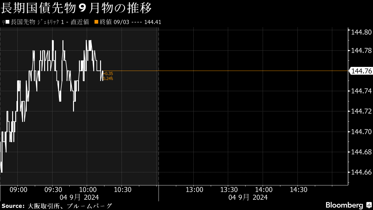 三井住友トラスト・アセットマネジメントの稲留克俊シニアストラテジストは、米長期金利低下の流れに加えて「国内でも日本株がかなり調整してリスクオフムードから買われやすい」と指摘。5日に30年国債入札を控えて「超長期債は本格的に買われるまではいかないが、入札に対する悲観ムードは弱まりそうだ」と述べた。