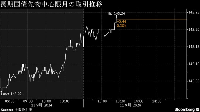 (ブルームバーグ):11日の債券相場は上昇。前日の米国長期金利が低下したことや、日本銀行が実施した国債買い入れオペの結果を受けて買いが優勢となっている。日本銀行の中川順子審議委員の発言を受けて為替市場で円高が進んだことも買いにつながっている。