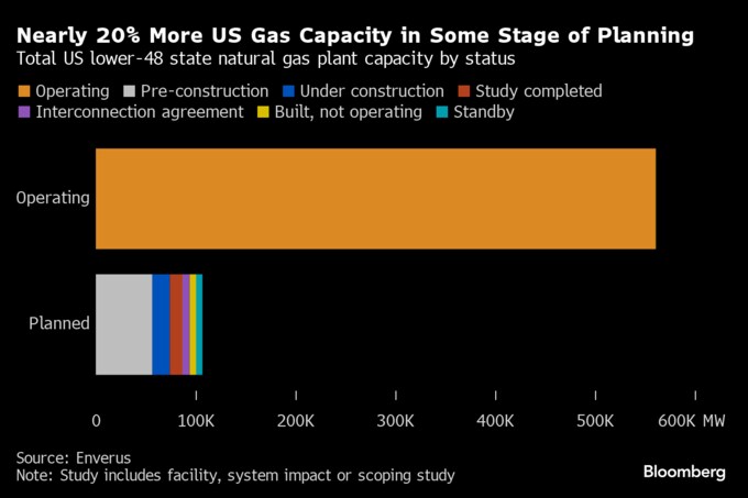 (ブルームバーグ):米国のエネルギー企業による新たな天然ガス火力発電所の建設計画が、ここ数年で最速ペースとなっている。これは、化石燃料がこれまで考えられていたよりも長い期間、利用される可能性が高いことを示す最も明白な兆しの一つだ。