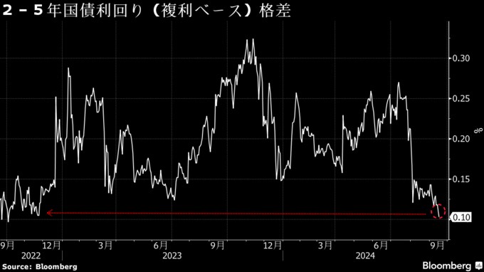 国債市場でも2年物と5年物の利回りの格差が大幅に縮小し、日銀の追加利上げに懐疑的な見方を示している。